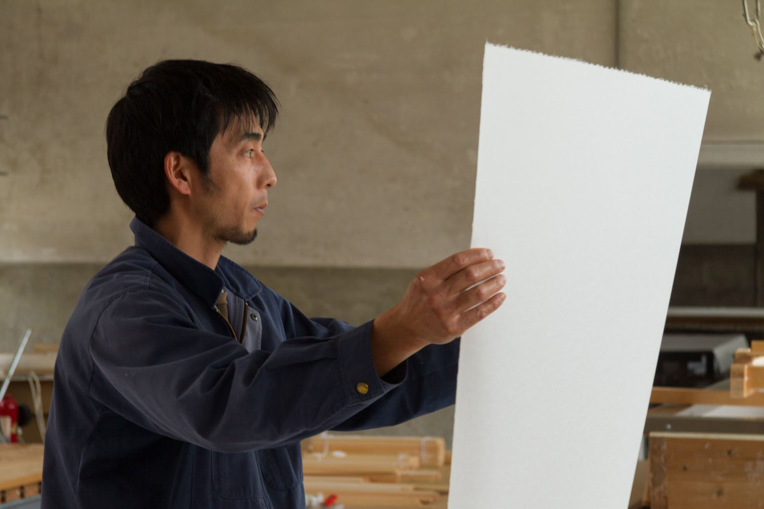 “The defining feature of IseWashi is its purity. Both handmade and machine-made paper are kept completely free of impurities such as dust, producing a perfectly pure white,” says President Yoshiaki Nakagita (left).