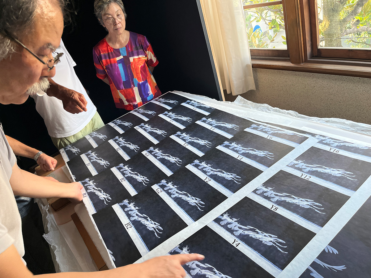 Chairman Nakagita, who developed washi for inkjet printing, is highly skilled both in photography and in printing techniques. We visited to check the prints prepared for the Mexico exhibition, and found that the level of attention to detail went far beyond our expectations.