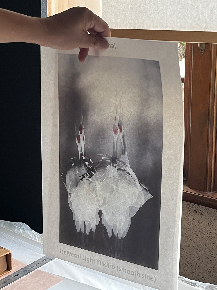 インクジェット対応の和紙を開発した中北会長は写真の腕前もプリントテクニックも秀逸です。今回はメキシコ展用プリントの仕上がりを確認しに伺いましたが、予想以上に細部に渡ってこだわりが施されていました。