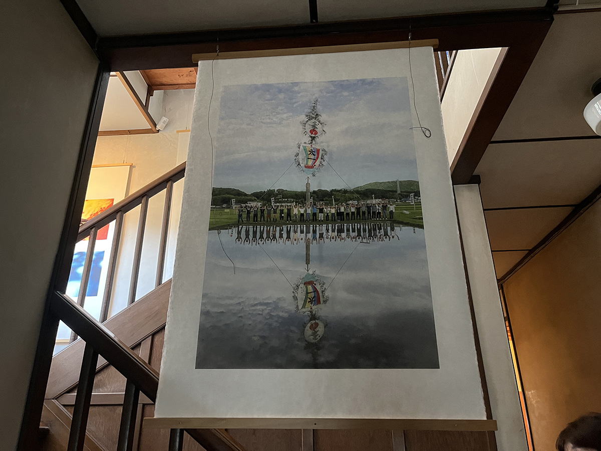 今回のメキシコ展では全作品にフレームではなく、このような木製バーを使います。日本の伝統的な和紙のプリントにマッチすると考えました(作品は現在展示中の別の方の作品)。