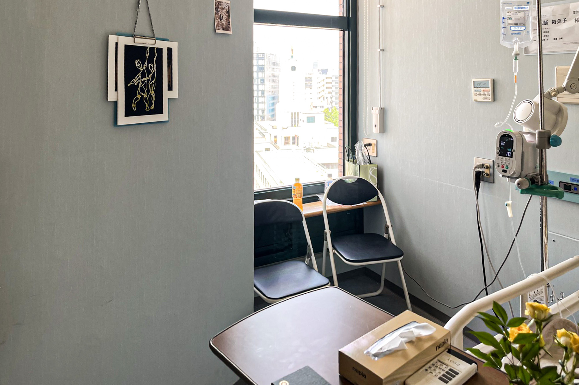 What I share here are the memories of the forty-four days we spent in Room 1052, and the artworks born from the meeting of her delicate sensibility and her fleeting life.