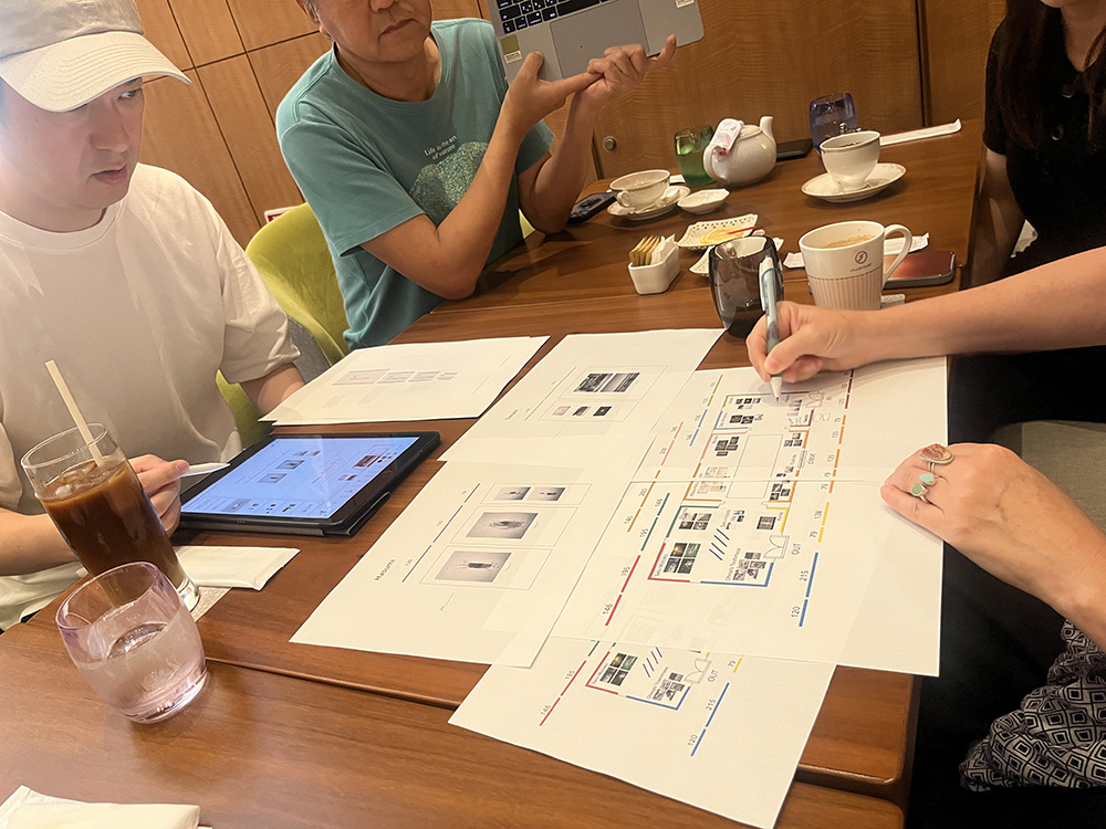 企画やキュレーションだけでなく、資金調達から作品の輸送やオープニングセレモニーの音楽家の手配など細かくやってくださっているアンさんだけに、作品のセレクトとデザイナーとの打ち合わせも来日して対応してくださいました。