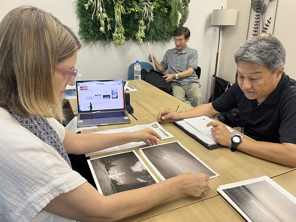 Hitoshi Sato is also a newly joined member, and this was his first portfolio review as well as his first experience exhibiting abroad. Despite limited time, he prepared both his statement and prints with great effort. His bird-themed work will be displayed suspended from the ceiling.